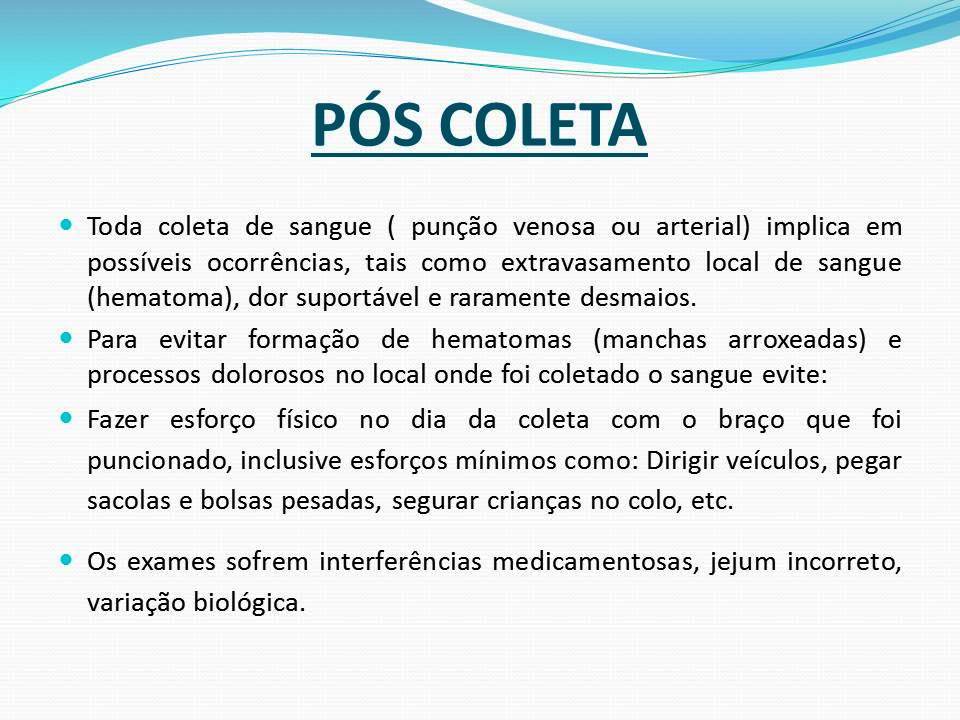 Na fase anterior ou posterior à coleta e a realização dos testes, existem alguns fatores relacionados ao comportamento do paciente que podem provocar alterações importantes nos resultados: